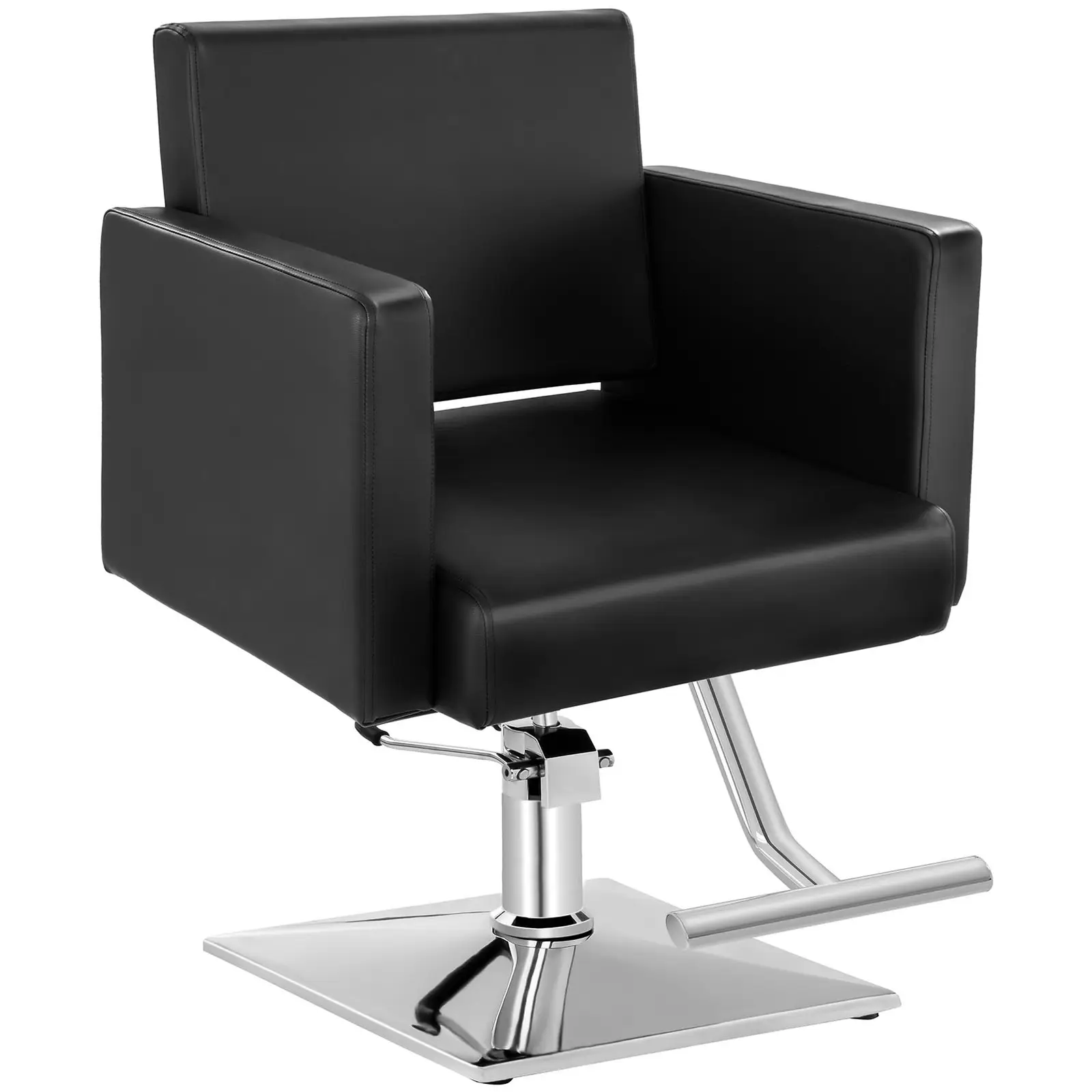 The attractive design offers a wide range of applications for the salon chair - whether in beauty salons, hair salons or tattoo parlours. The combination of black imitation leather with precise seams and chrome elements creates an elegant and timeless appearance. The barber chair is not only comfortable, it is also stylish.